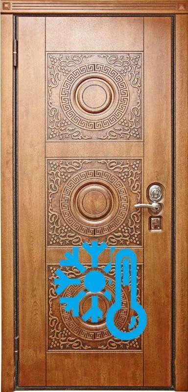 Металлические двери с терморазрывом в Керчи состоят из двух частей, стянутых болтами, между которыми проложен материал с низкой теплопроводностью. Как правило это тонкое пробковое полотно. Таким образом, во входной двери отсутствует мостик холода, наружная и внутренняя часть двери между собой не соприкасаются, а значит, дверь не промерзает. Наполнение таких дверей тоже может быть многослойным, что создает дополнительную преграду для проникновения в дом холода.