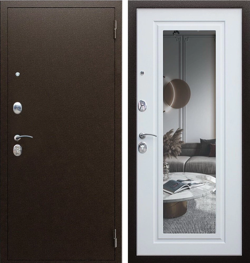 Надежная входная Дверь Комфорт с зеркалом премиум класса по цене 30 603 руб. Большая толщина стали защитит от проникновения в ваш дом, квартиру или коттедж. Используется очень качественная фурнитура: замки, цилиндры, ручки, защелки. Покрытие и отделка двери изготовлено под внимательным контролем производителя. Дверь имеет долгий срок службы и гарантию.