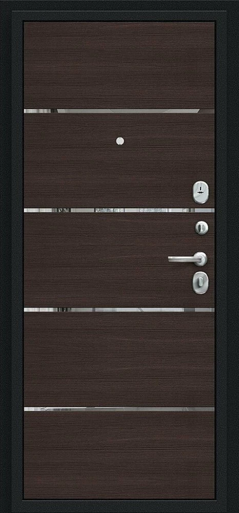 Надежная входная Дверь Браво Лайн Букле черное/Wenge Veralinga премиум класса по цене 32 173 руб. Большая толщина стали защитит от проникновения в ваш дом, квартиру или коттедж. Используется очень качественная фурнитура: замки, цилиндры, ручки, защелки. Покрытие и отделка двери изготовлено под внимательным контролем производителя. Дверь имеет долгий срок службы и гарантию.