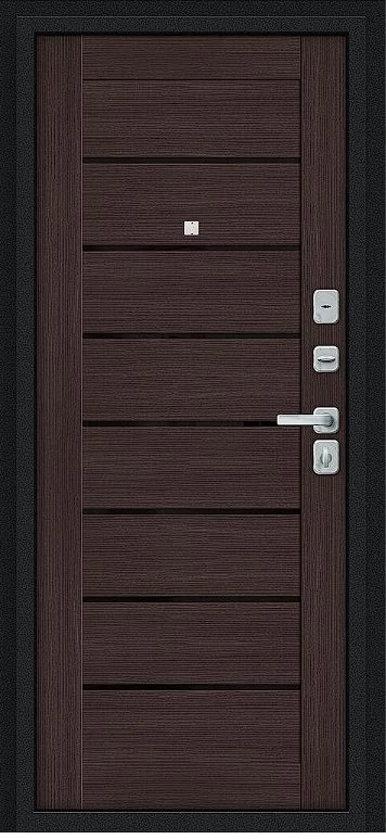 Надежная входная Дверь Браво Техно/BChrome Букле черное/Wenge Melinga премиум класса по цене 37 103 руб. Большая толщина стали защитит от проникновения в ваш дом, квартиру или коттедж. Используется очень качественная фурнитура: замки, цилиндры, ручки, защелки. Покрытие и отделка двери изготовлено под внимательным контролем производителя. Дверь имеет долгий срок службы и гарантию.