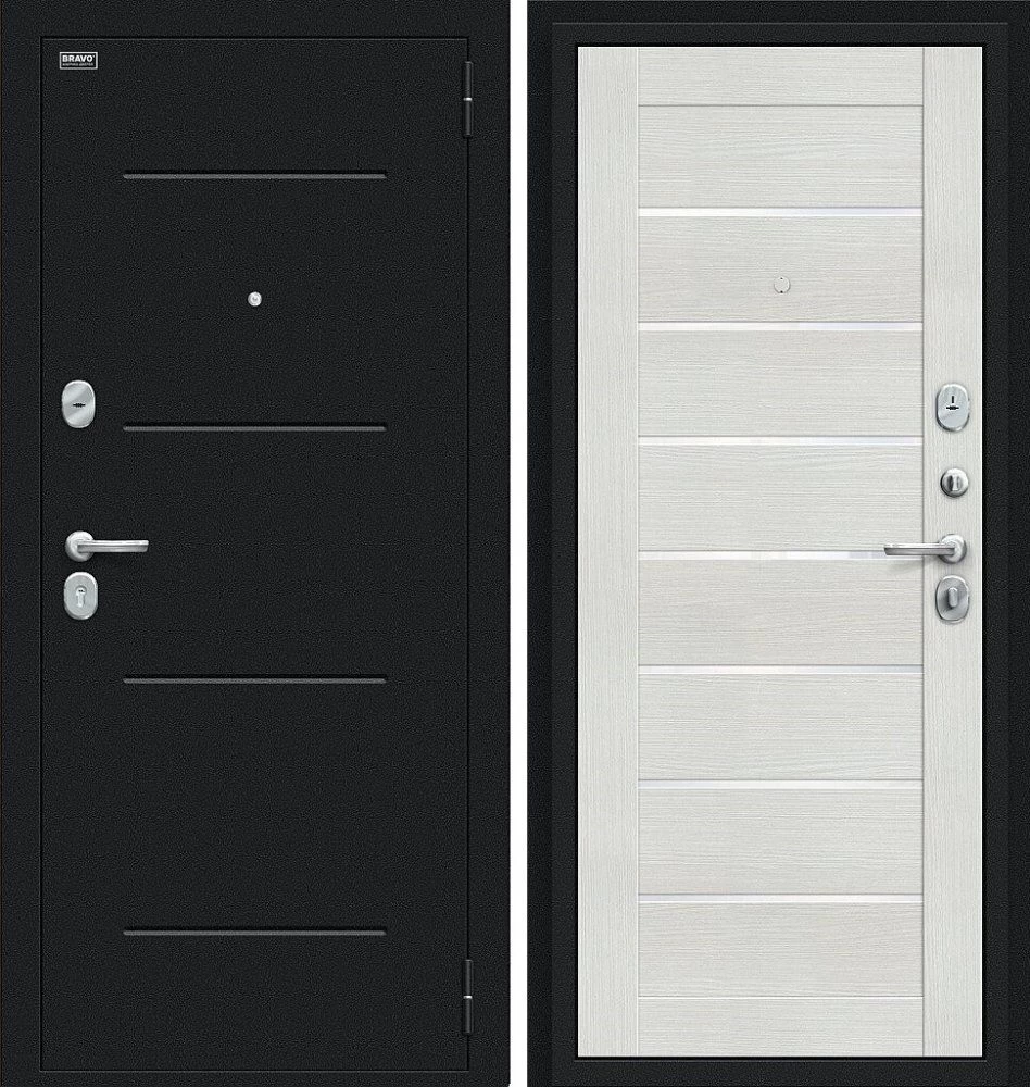 Надежная входная Дверь Браво Техно Букле черное/Bianco Veralinga премиум класса по цене 33 453 руб. Большая толщина стали защитит от проникновения в ваш дом, квартиру или коттедж. Используется очень качественная фурнитура: замки, цилиндры, ручки, защелки. Покрытие и отделка двери изготовлено под внимательным контролем производителя. Дверь имеет долгий срок службы и гарантию.